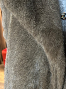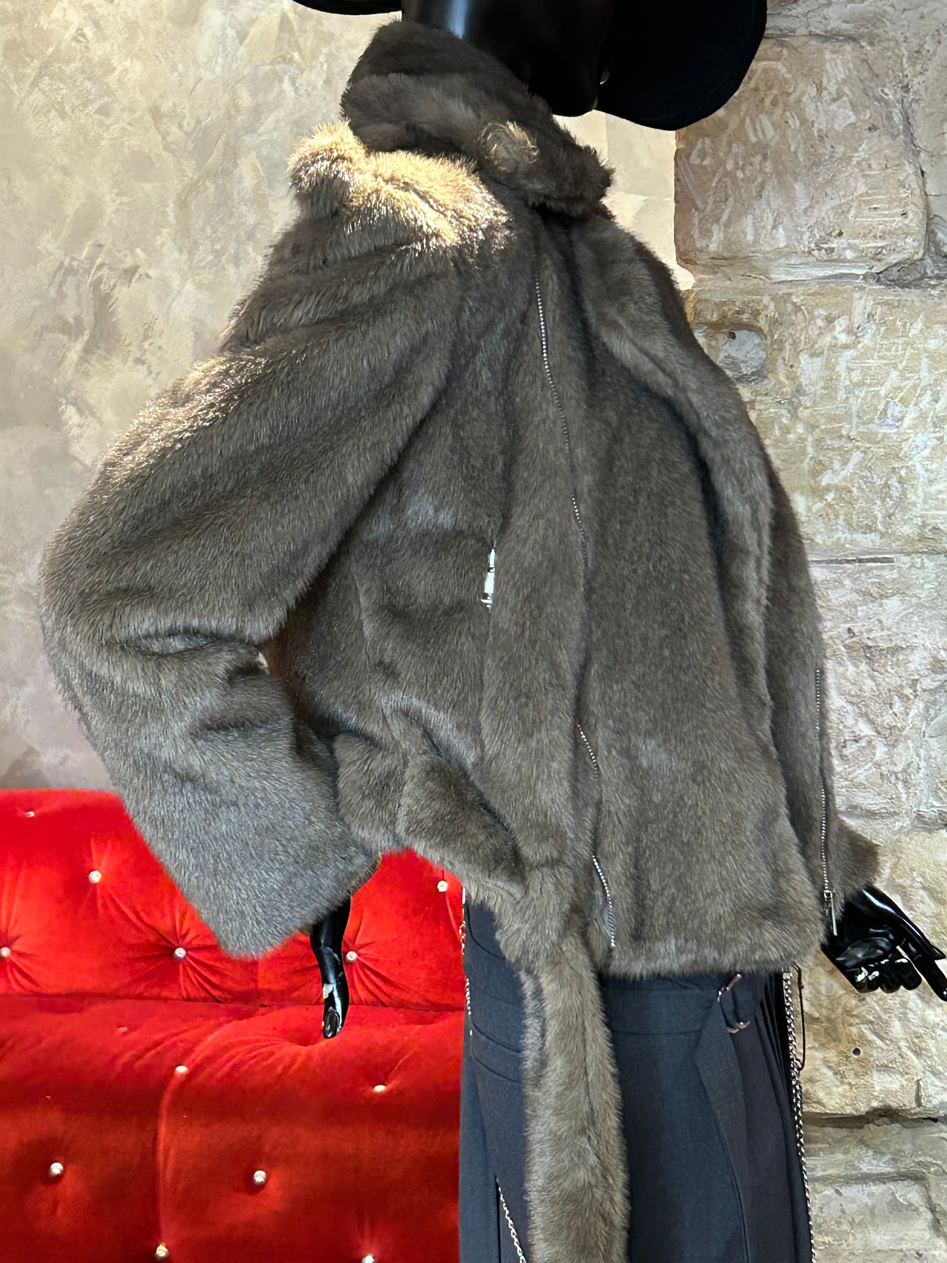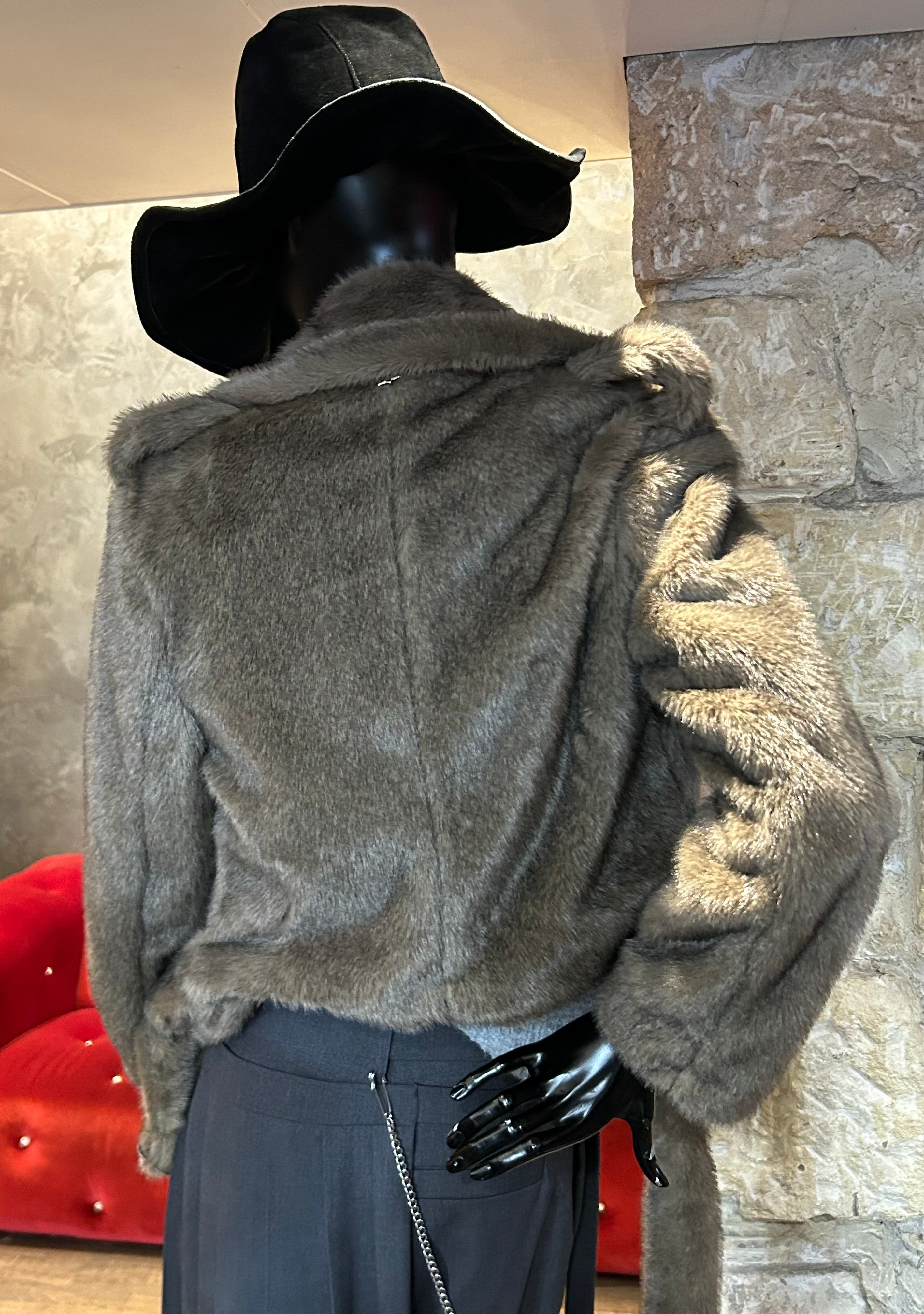 Un perfecto en fausse fourrure de vison couleur taupe.