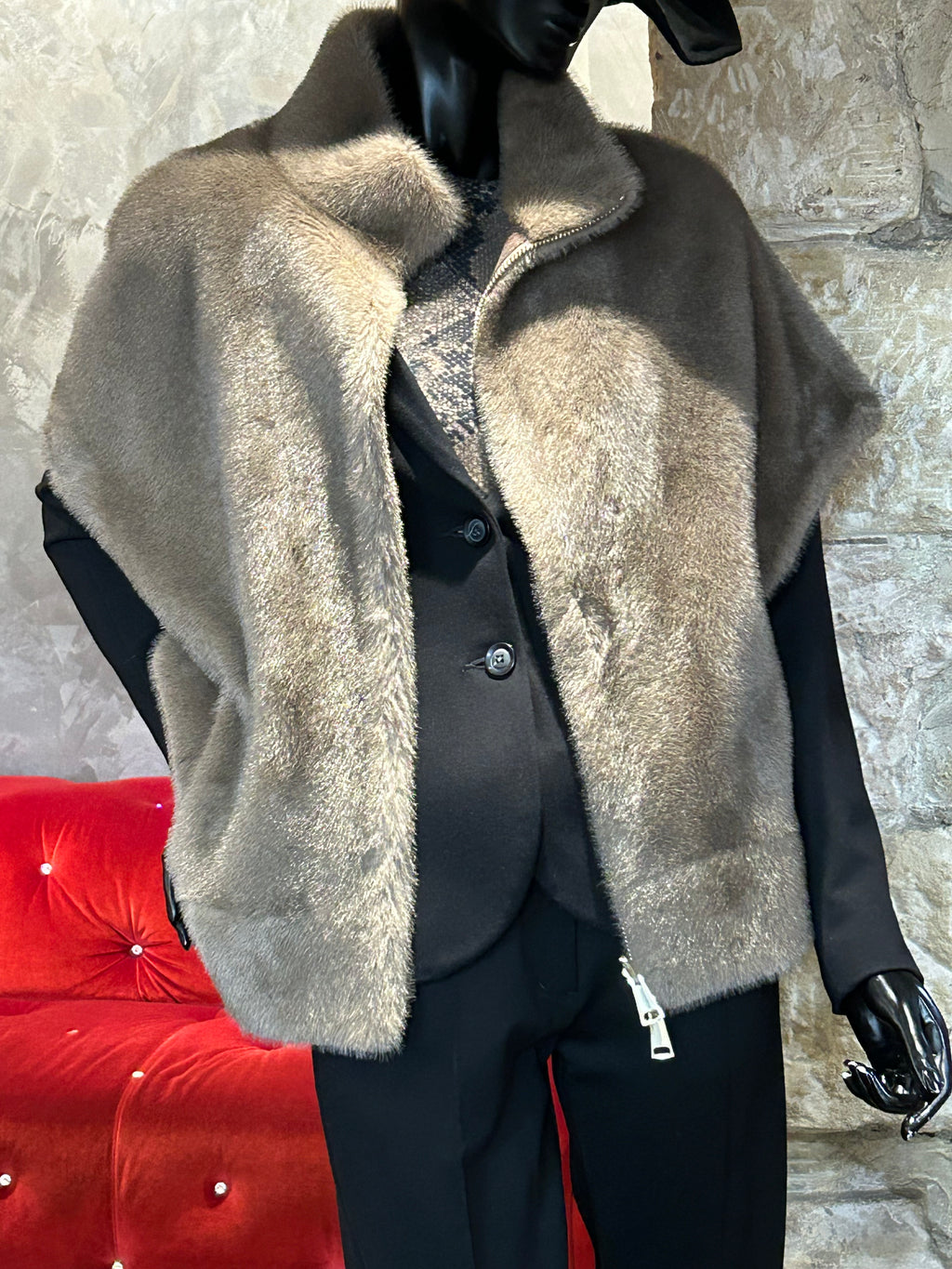 FAUX VISON RÉVERSIBLE SANS MANCHES COULEUR VISON